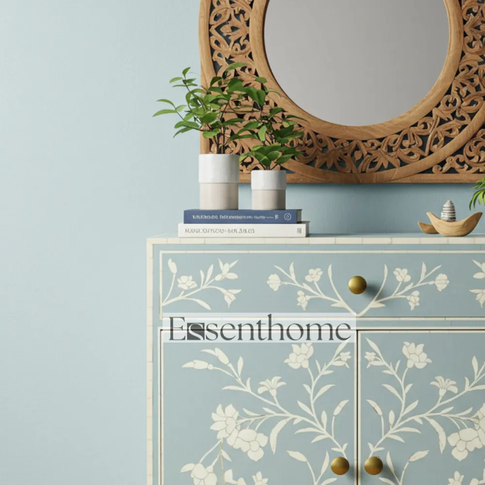 Built from premium wood, Bone Inlay Cabinet for Bedroom ensures durability and long-lasting functionality. Its compact yet elegant design makes it perfect for hallways, living rooms, bedrooms, or any area where you need both storage and style. The Bone Inlay Storage Cabinet blends traditional craftsmanship with modern utility, offering a unique combination of beauty and practicality for your home.