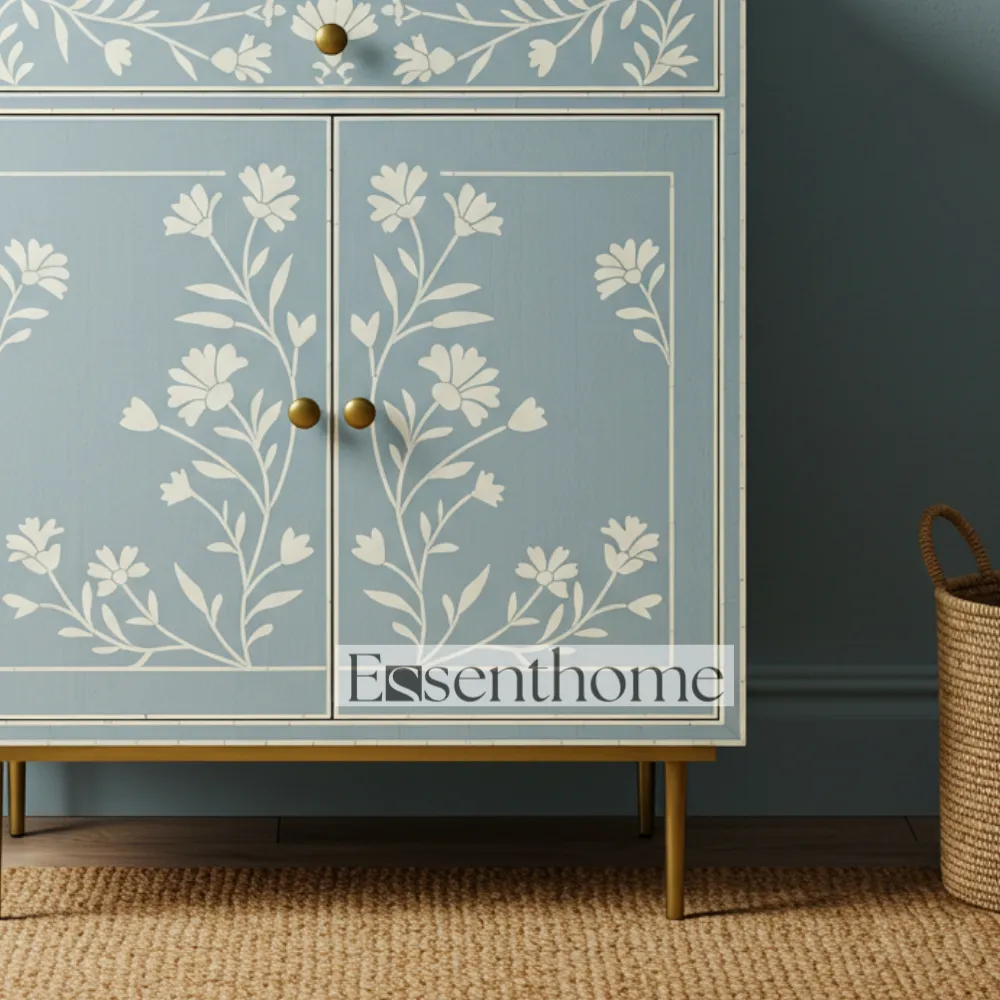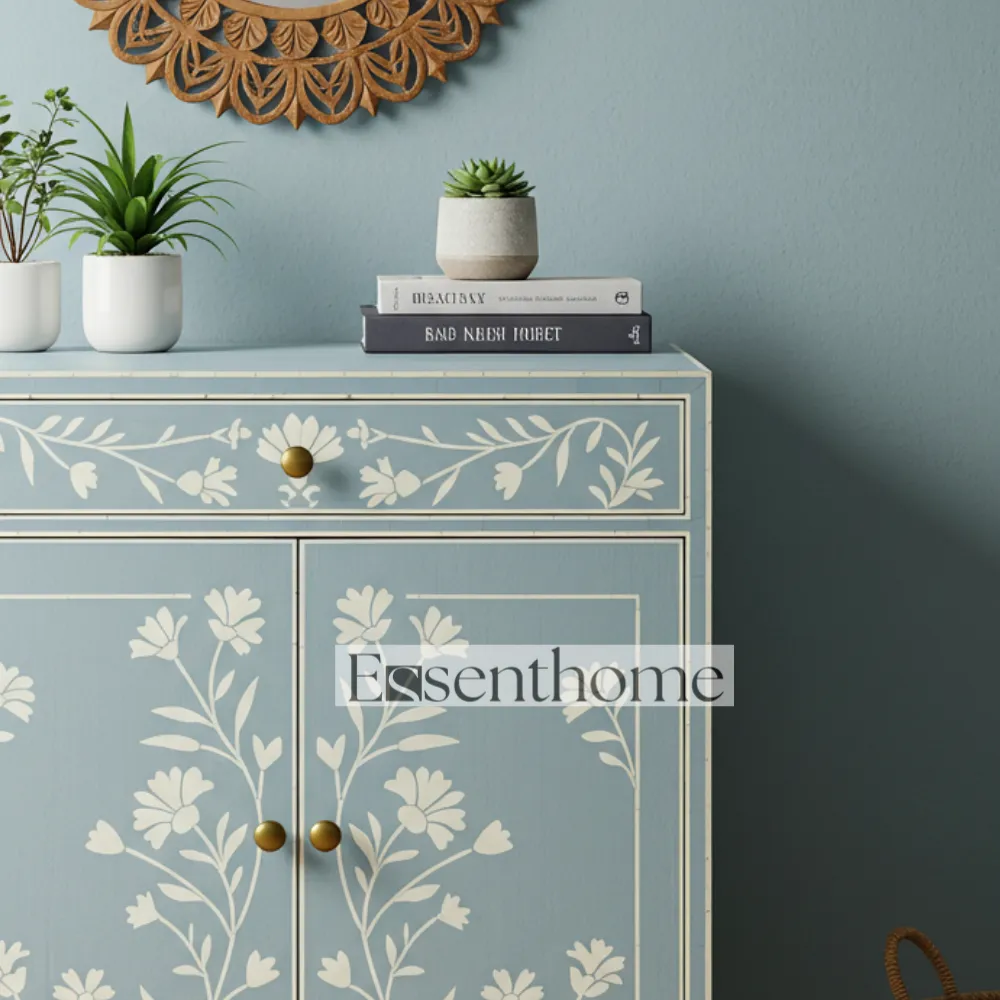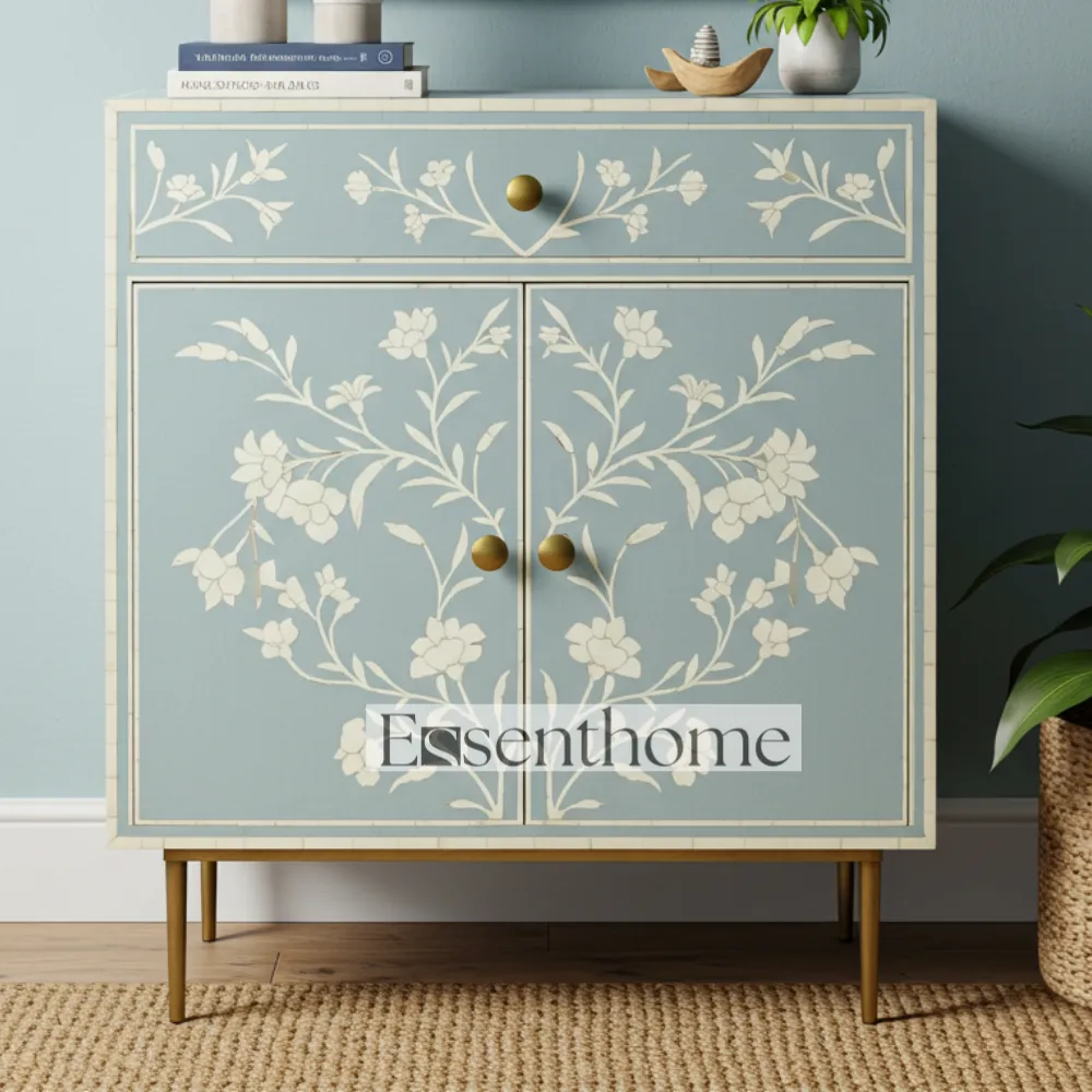 Constructed from high-quality wood, this cabinet ensures durability and long-lasting functionality. Its elegant design makes it perfect for living rooms, bedrooms, hallways, or any area where you need both decorative appeal and practical storage. The Blue Bone Inlay Storage Cabinet blends traditional craftsmanship with modern utility, offering a unique combination of beauty, functionality, and artisanal charm for your home.