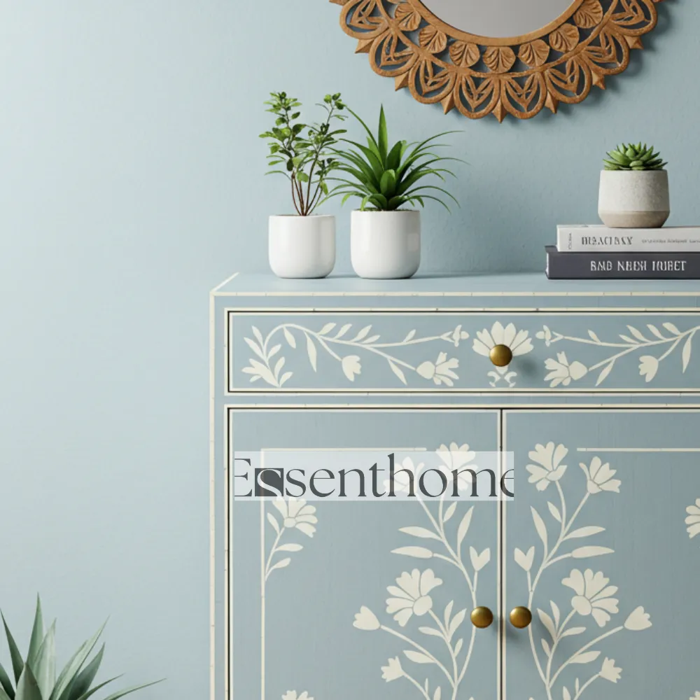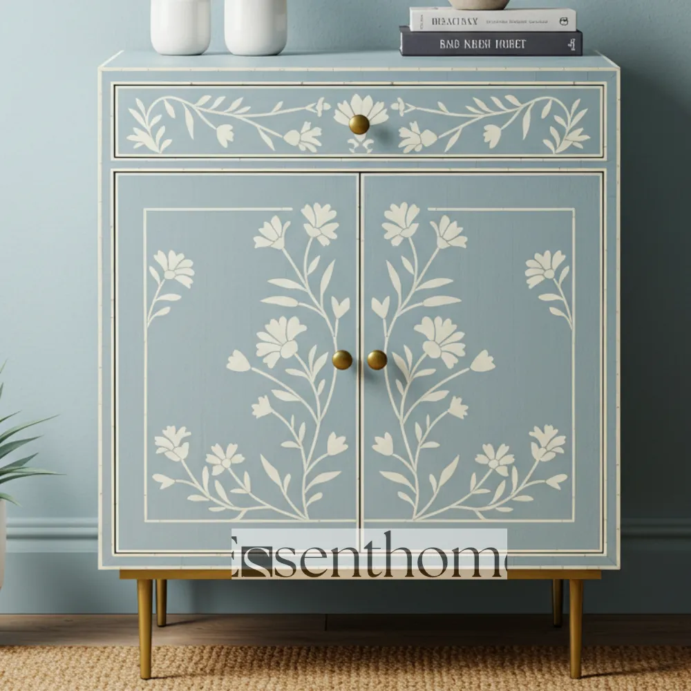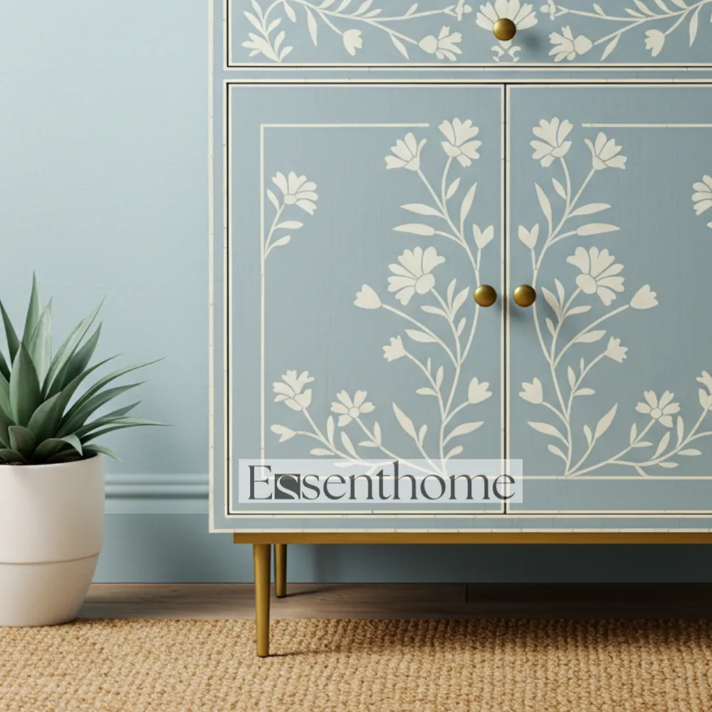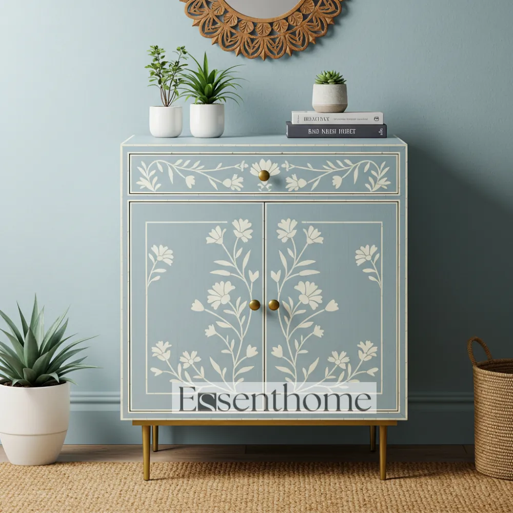 Constructed from high-quality wood, this cabinet ensures durability and long-lasting functionality. Its elegant design makes it perfect for living rooms, bedrooms, hallways, or any area where you need both decorative appeal and practical storage. The Blue Bone Inlay Storage Cabinet blends traditional craftsmanship with modern utility, offering a unique combination of beauty, functionality, and artisanal charm for your home.
