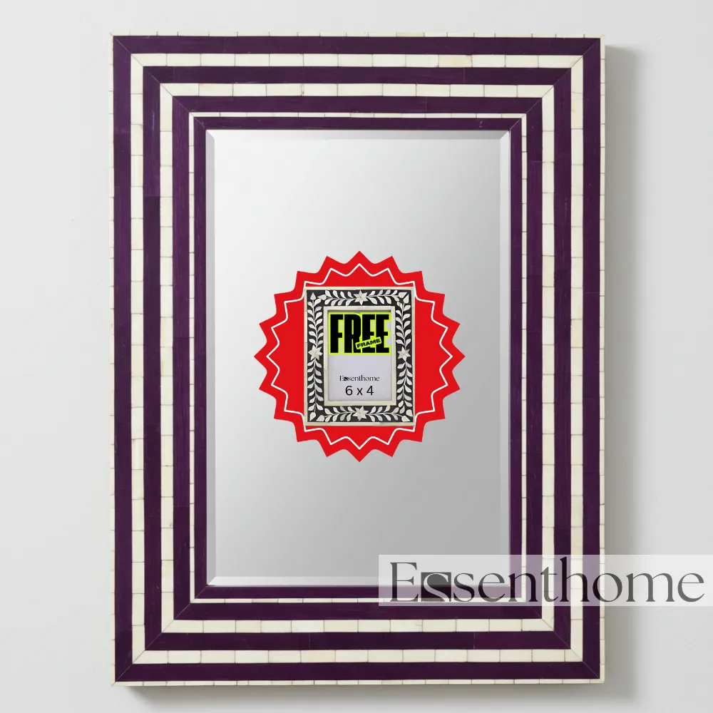 Transform your interiors with the Essenthome Handcrafted Bone Inlay Wall Mirror, a luxurious furniture accent that beautifully merges functionality with timeless artistry. Designed with a striking purple and white floral bone inlay pattern, this mirror is more than just a reflective surface—it’s a statement piece that elevates the charm of any room.