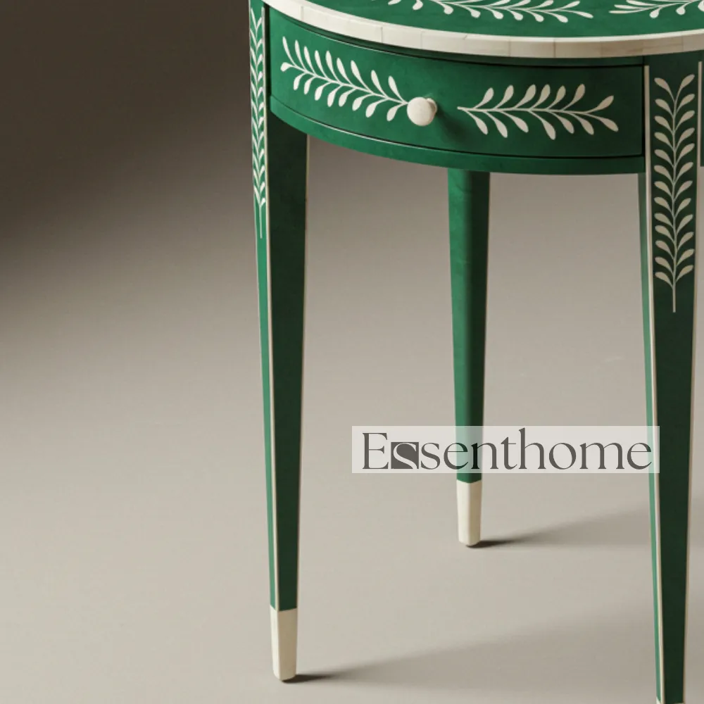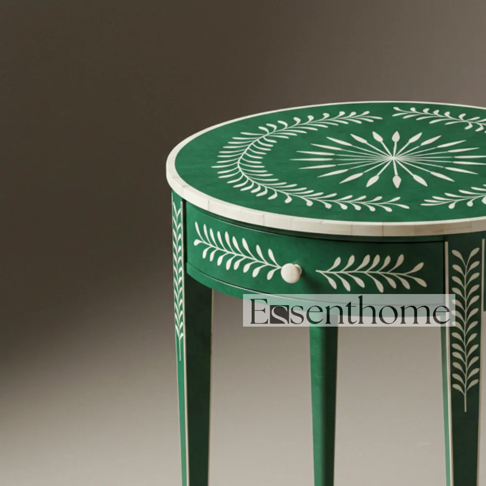 Be the first to review “Essenthome Handcrafted Green Bone Inlay Round Stool with Floral Design”