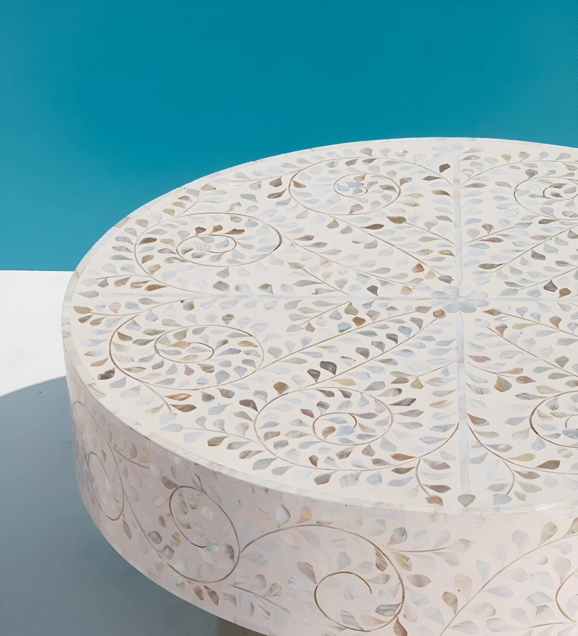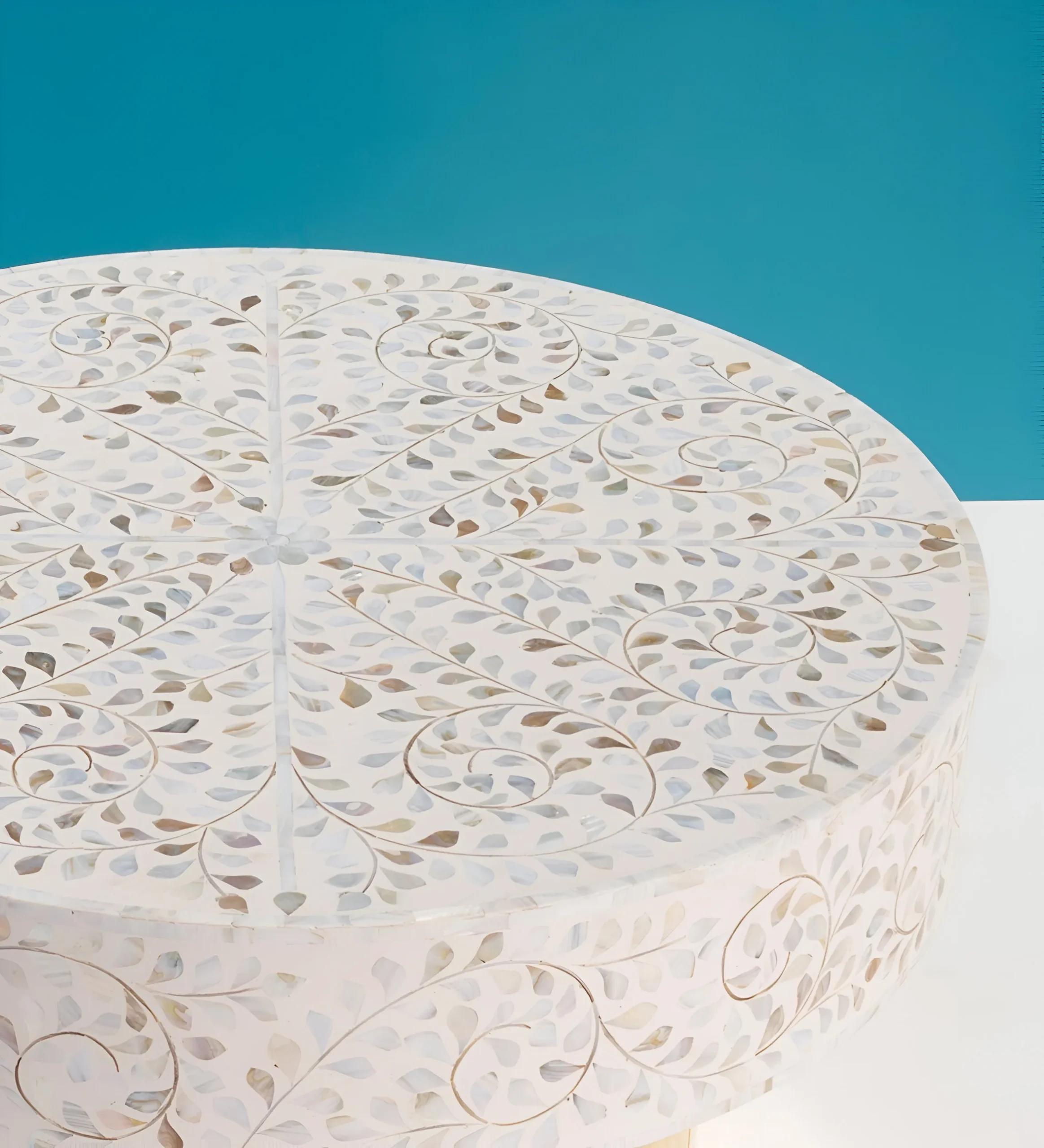 Each Essenthome Round Coffee Table is meticulously handmade, showcasing exceptional craftsmanship and attention to detail. The floral bone inlay is carefully designed by skilled artisans, creating a unique and luxurious furniture piece that stands out in any room.