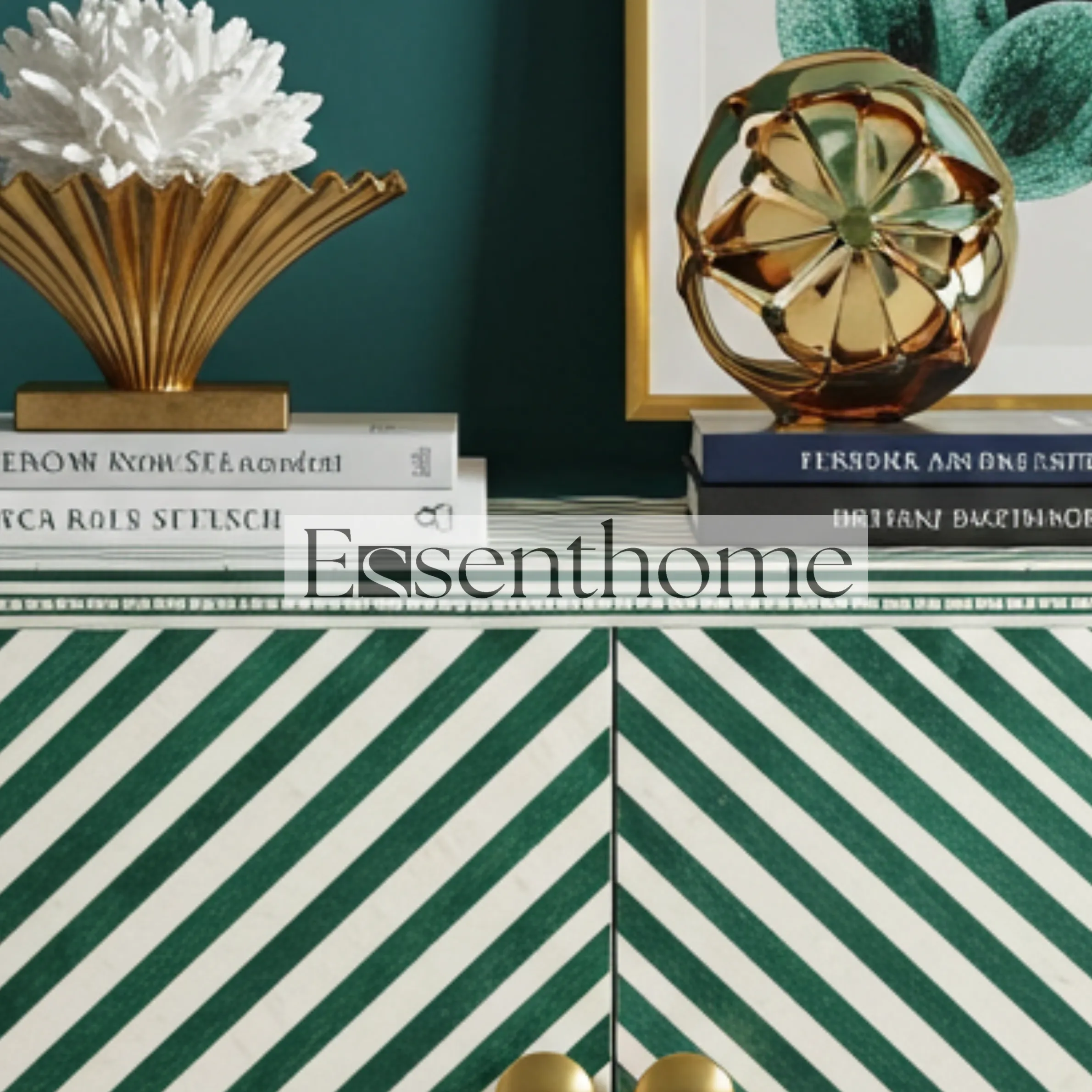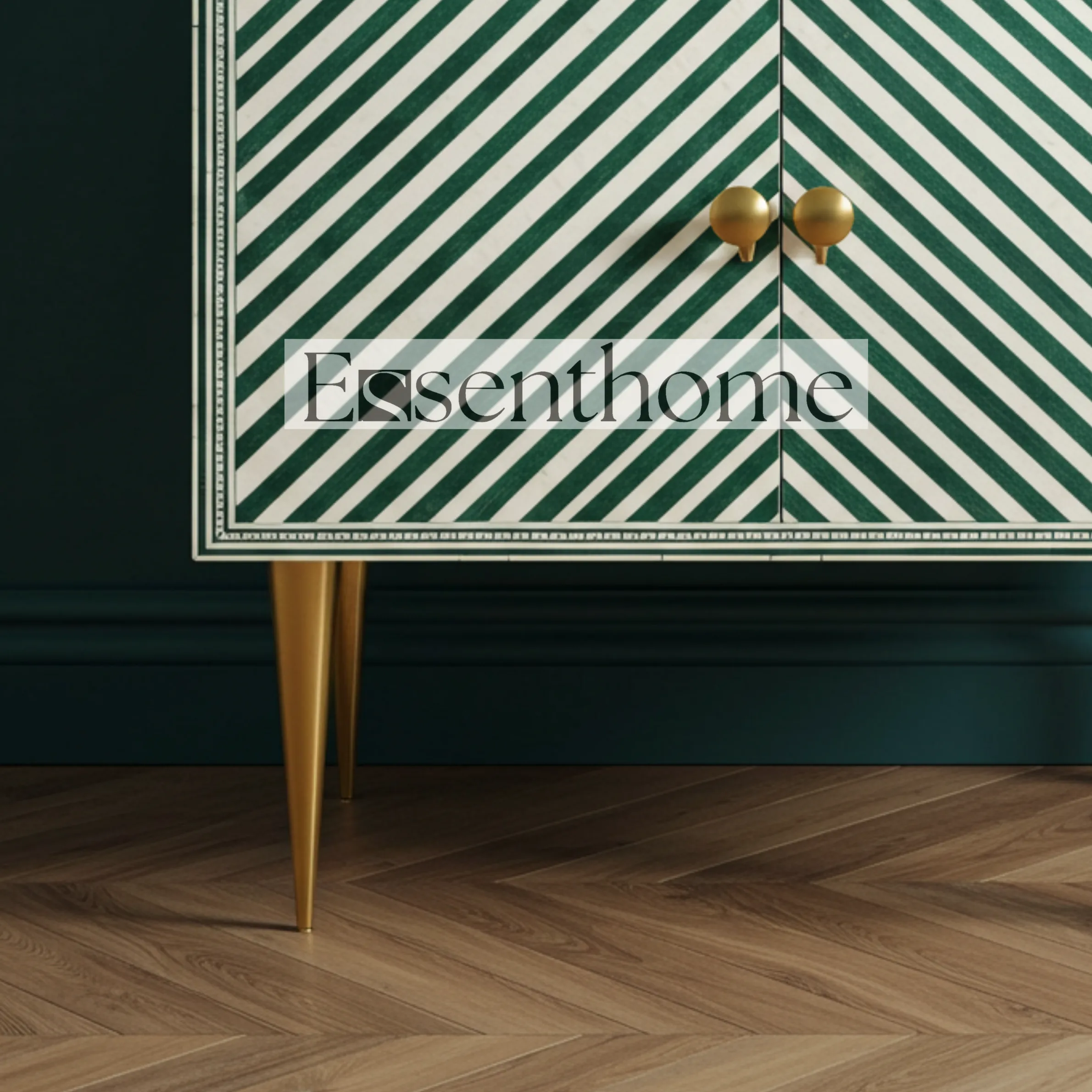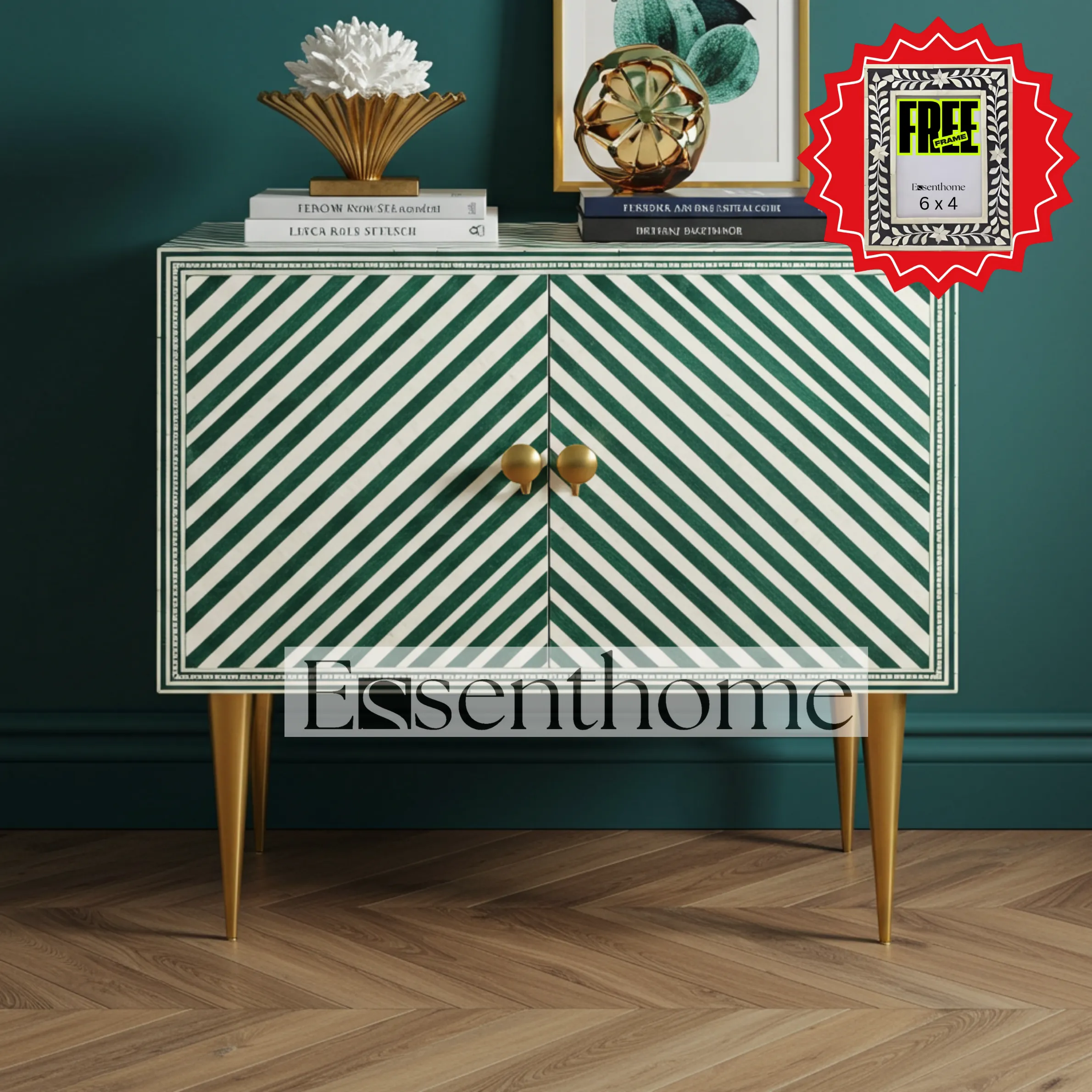 Bring timeless elegance and artisan craftsmanship into your home with this Handmade Bone Inlay Sideboard Cabinet by Essenthome. Carefully handcrafted by skilled artisans, this stunning cabinet features a striking geometric striped bone inlay pattern in green and ivory that adds a sophisticated touch to any living room, dining space, or entryway.