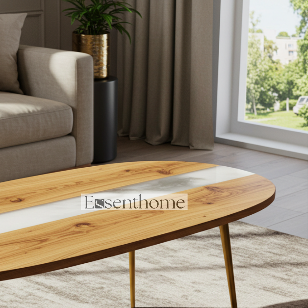 Elevate your living room décor with the Essenthome Wooden Oval Coffee Table – a perfect combination of elegance, functionality, and craftsmanship. Made from premium quality solid wood, this oval coffee table is sturdy, durable, and designed to last for years. Its smooth, polished tabletop provides ample space for drinks, books, décor items, or snacks, making it ideal for everyday use or entertaining guests.