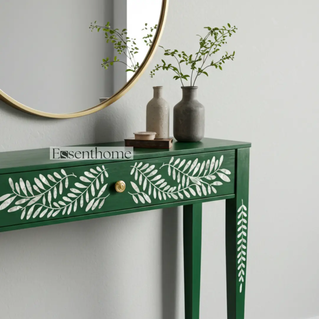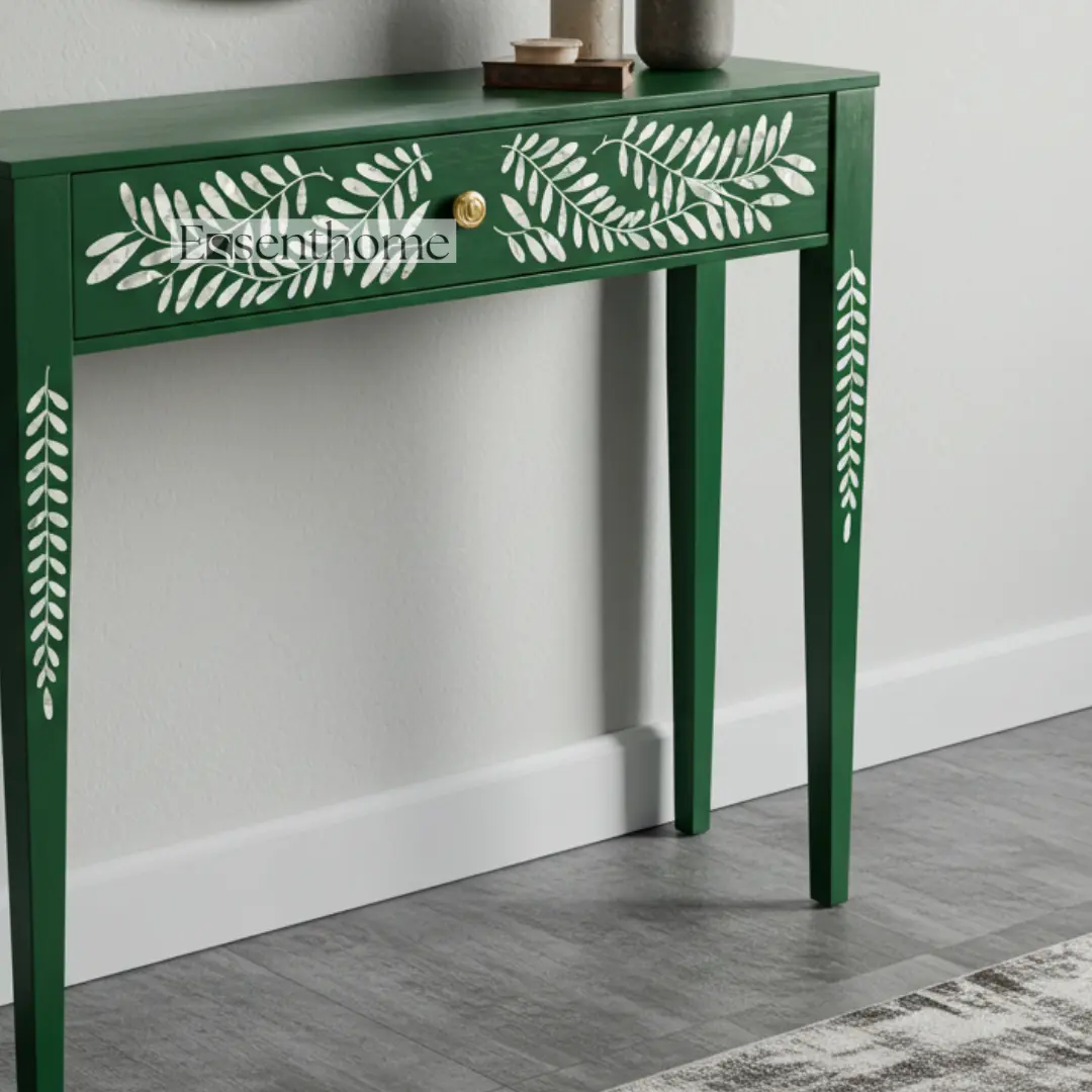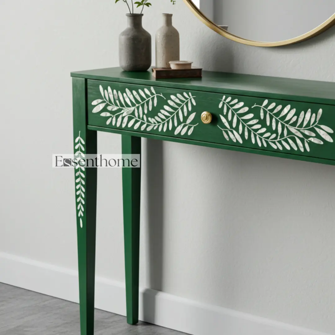 Be the first to review “Essenthome Striped Bone Inlay Console Table ? Handmade Entryway Hall Table with Brass Knob”