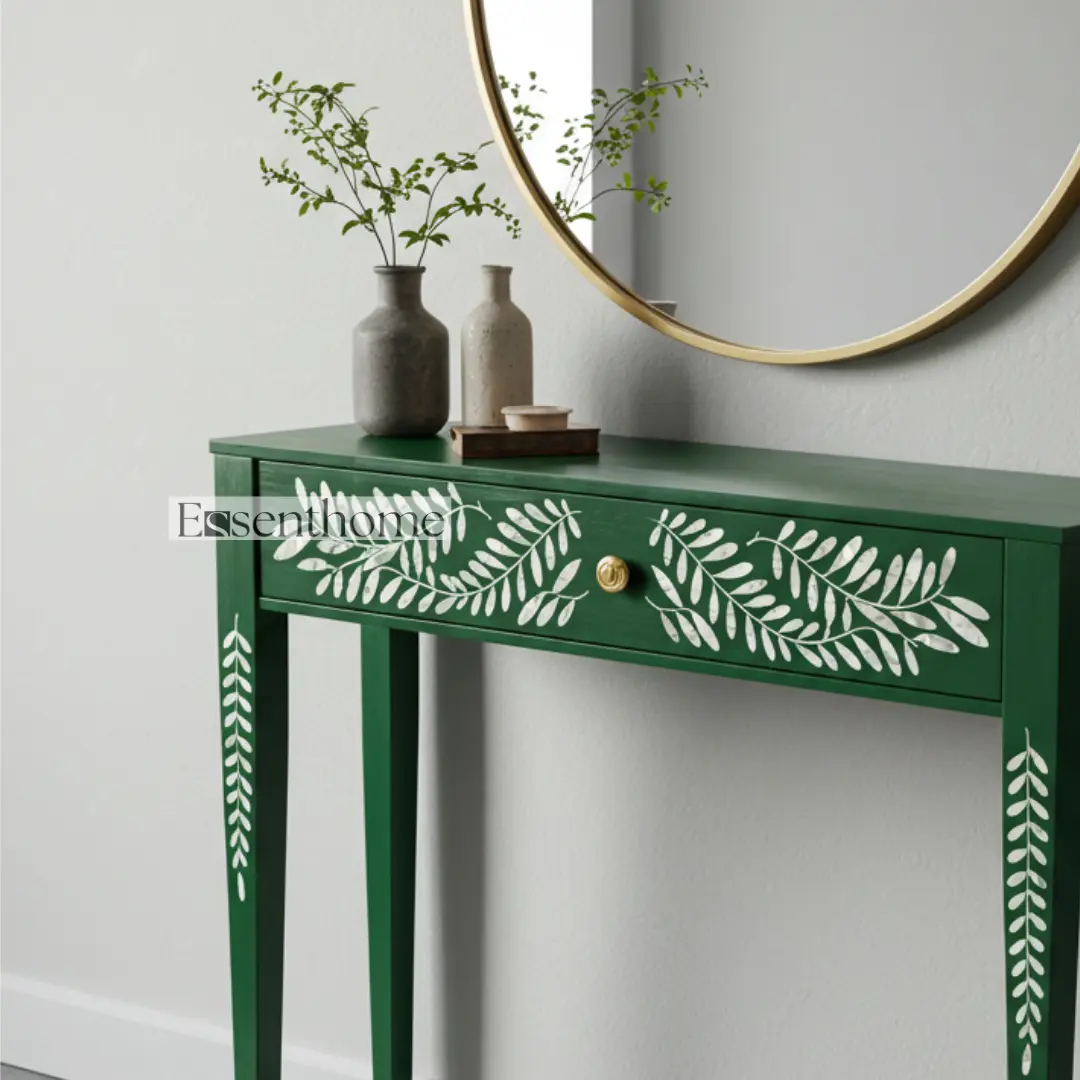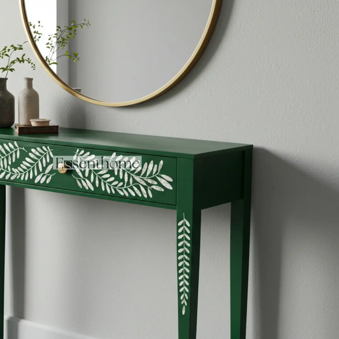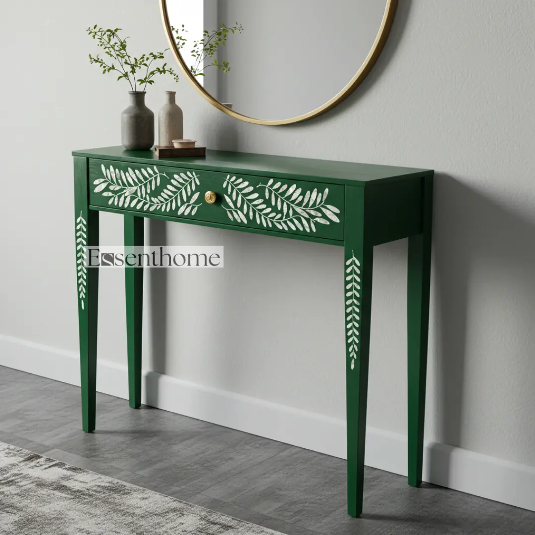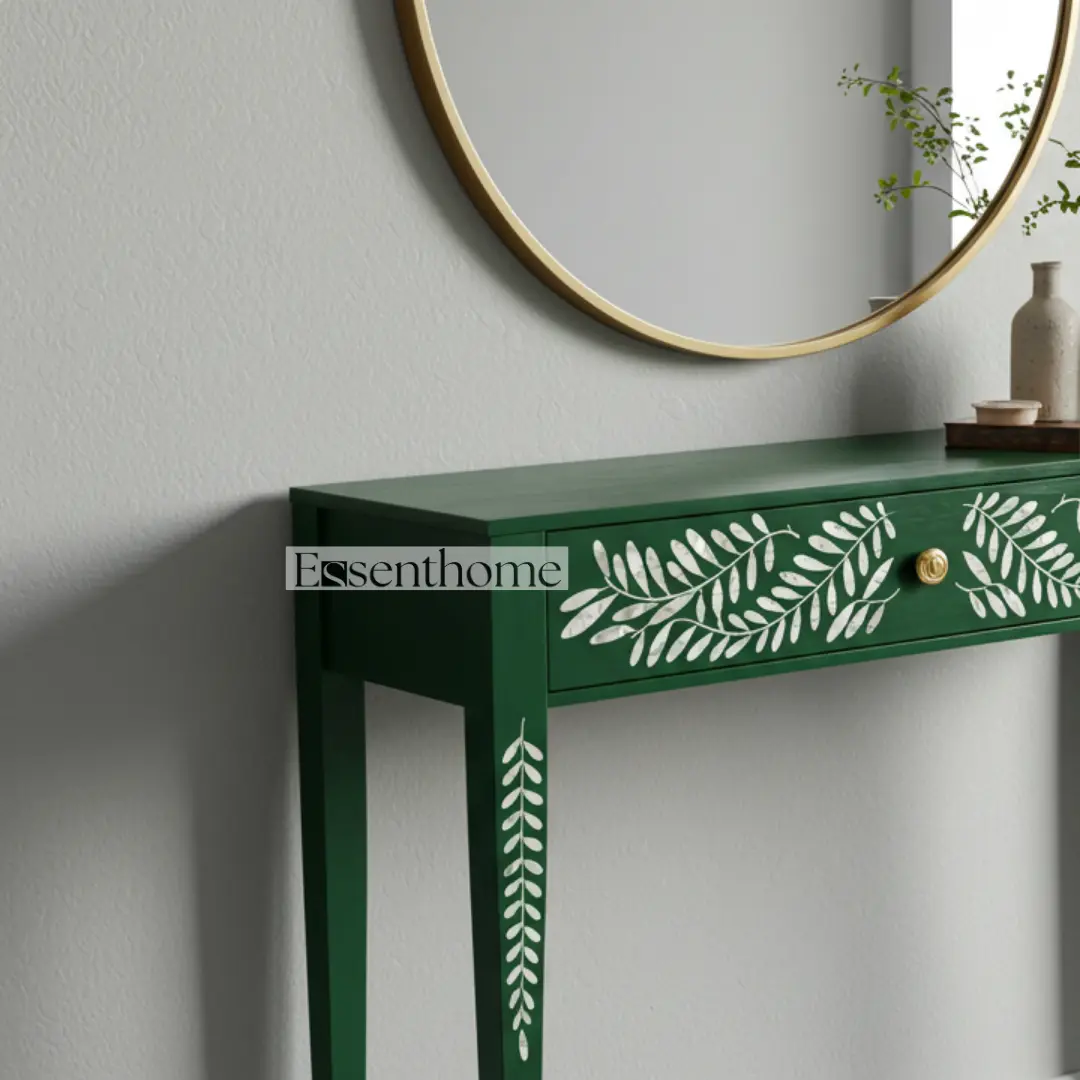 Be the first to review “Essenthome Striped Bone Inlay Console Table ? Handmade Entryway Hall Table with Brass Knob”