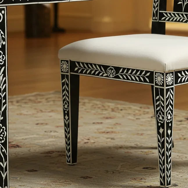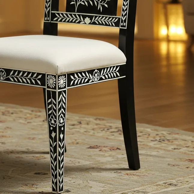 Handmade bone inlay dining chair with intricate floral leaf designs