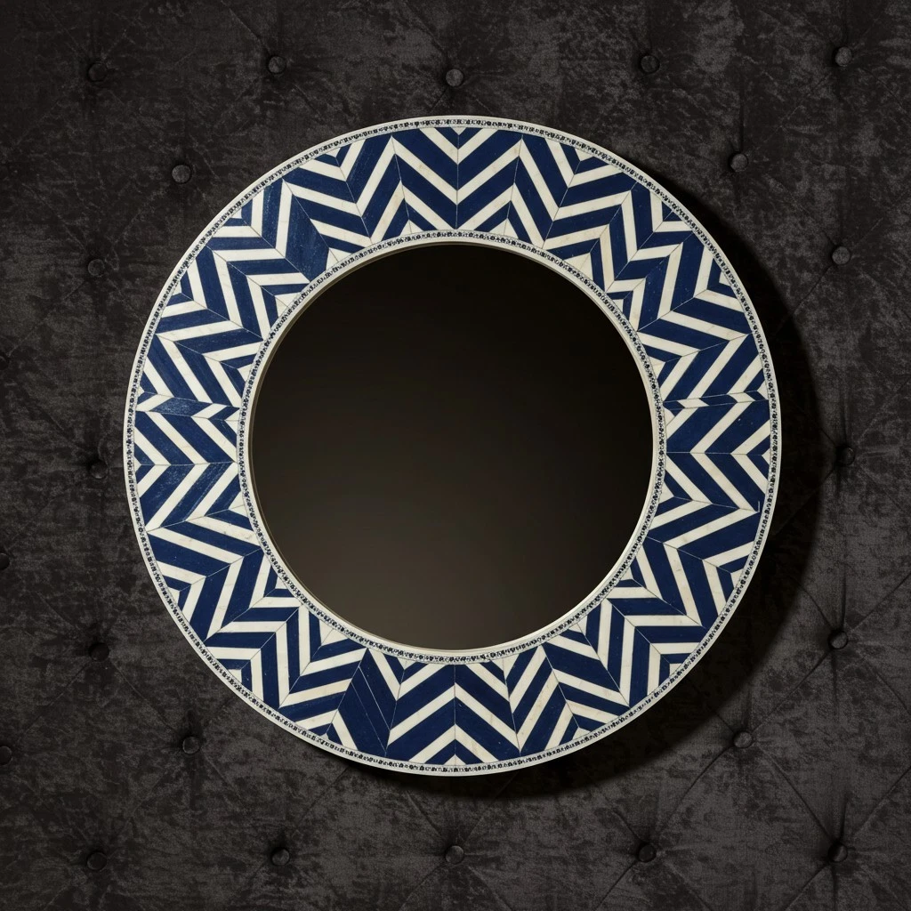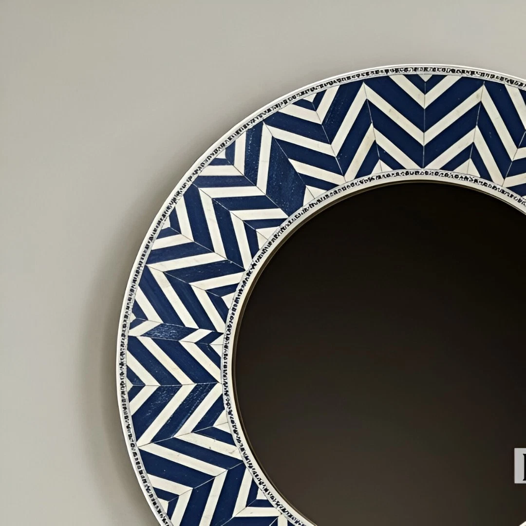 Handmade Round blue bone inlay mirror – Chevron Pattern