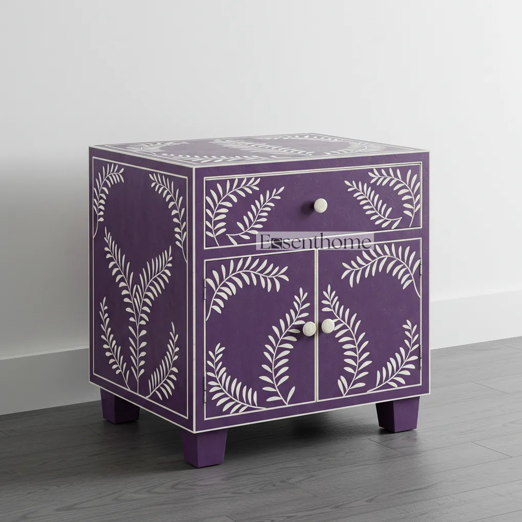 Decorative Bone Inlay Nightstand – Purple Floral Pattern